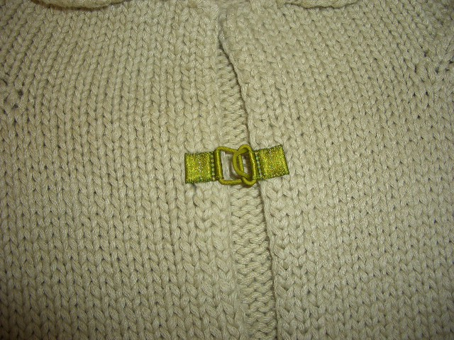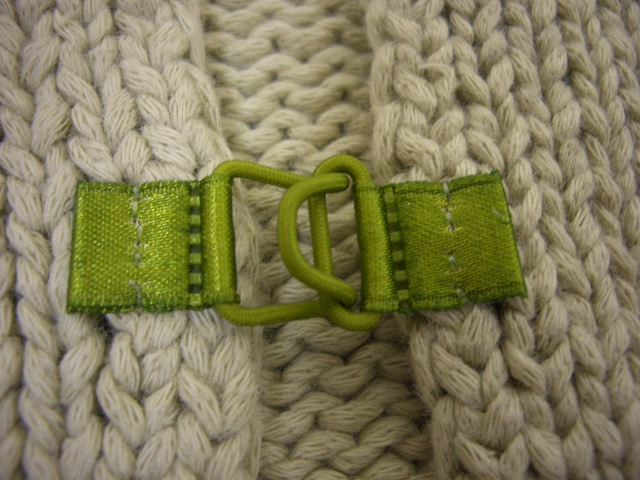 ホックの色を洋服と同色ではなく、色を変えることで前を留めるだけでなく、アクセントにもなっています。
