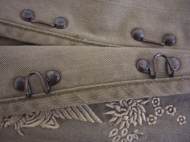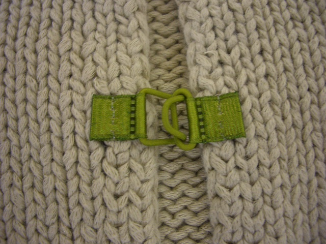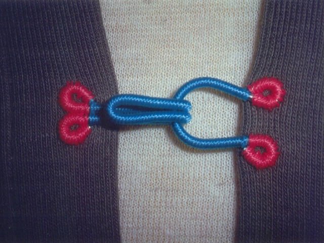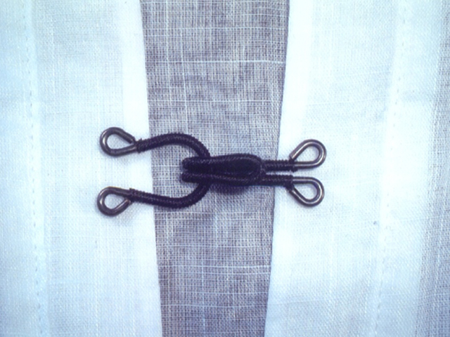 手加工ホックの“雅”の生成り色が、洋服の色に合わせて染色して、使用されています。